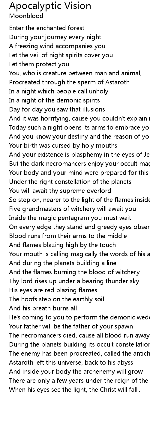 And the flames burning the blood of witchery |