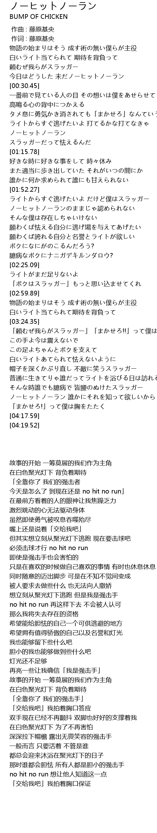 | [01:53.52] | ライトからすぐ逃げたいよ だけど僕はスラッガー |