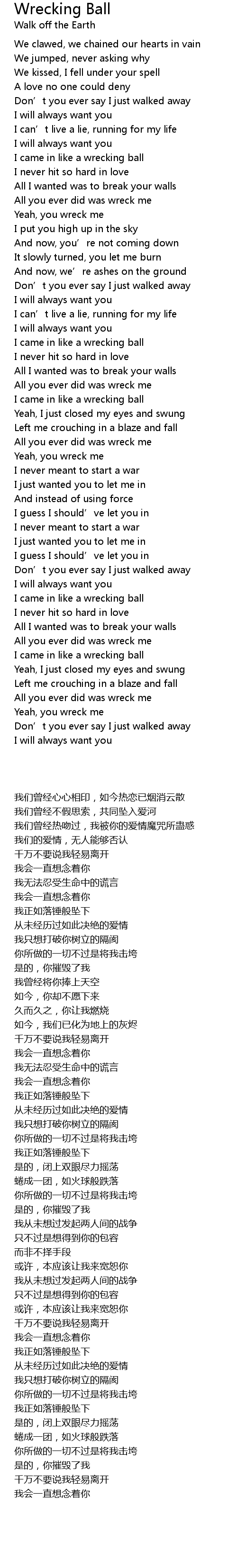| [00:34.000] | I came in like a wrecking ball |