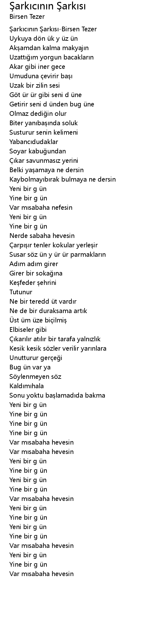 | [00:00.740] | Şarkıcının Şarkısı-Birsen Tezer |