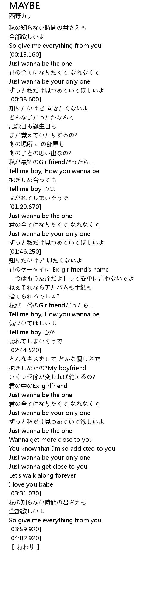 | [02:03.940] | 君のケータイに Ex-girlfriend's name |