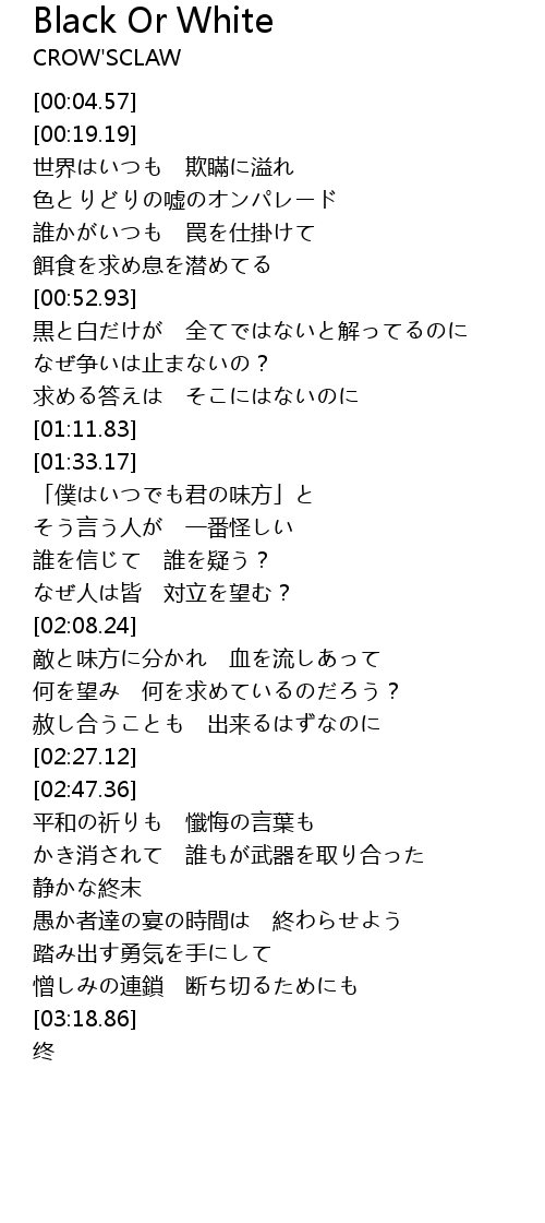 | [00:55.30] | 黒と白だけが 全てではないと解ってるのに |