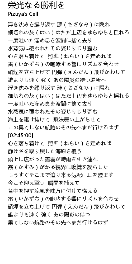 | [03:13.29] | 雷(いかずち)の咆哮する響にリズムを合わせ |