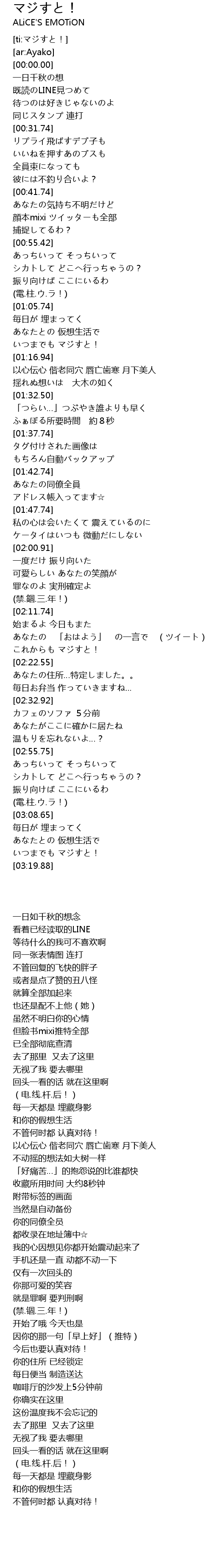 | [02:14.48] | あなたの 「おはよう」 の一言で (ツイート) |