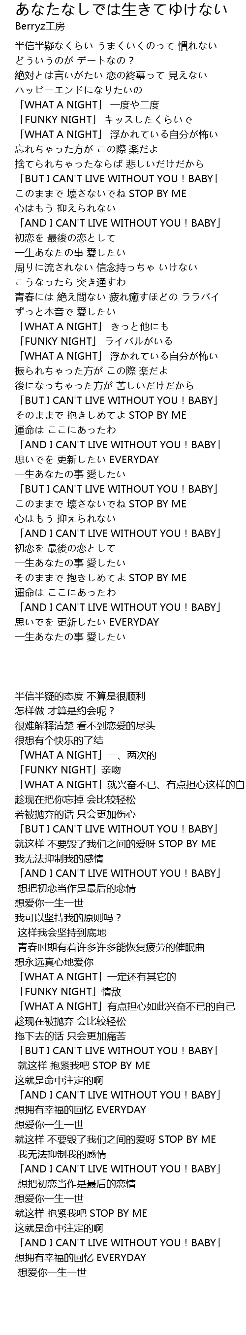 | [02:56.830] | BUT I CAN' T LIVE WITHOUT YOU! BABY |
