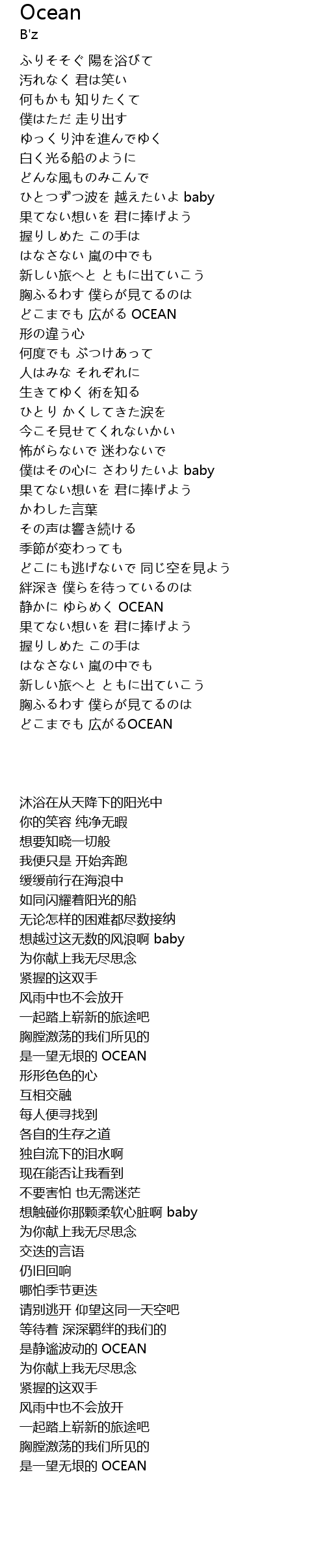 ひとつずつ波を 越えたいよ baby |
