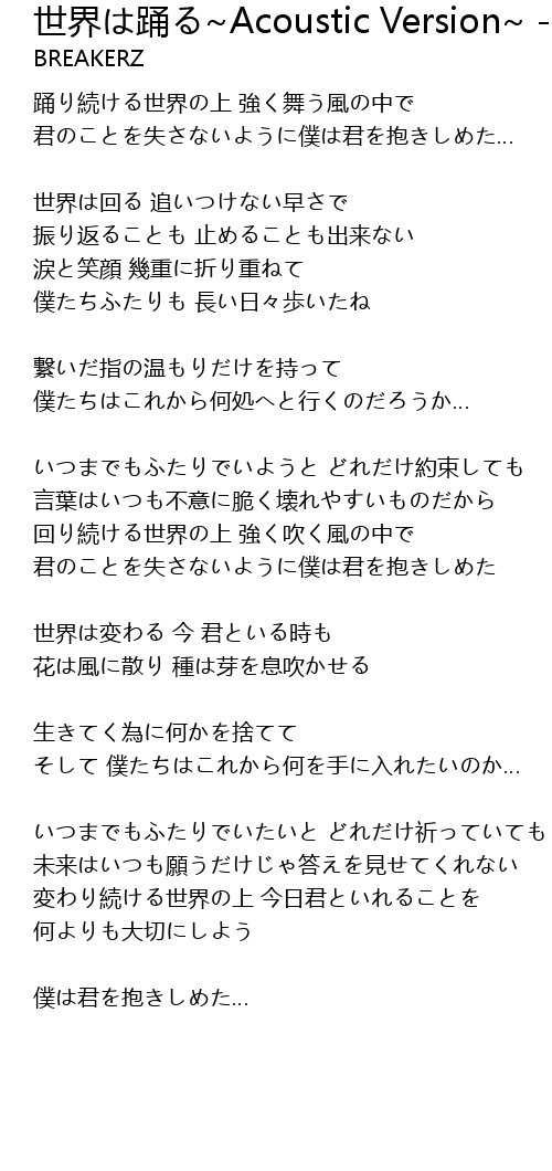 | Song | 世界は踊る~Acoustic Version~ - unplug |