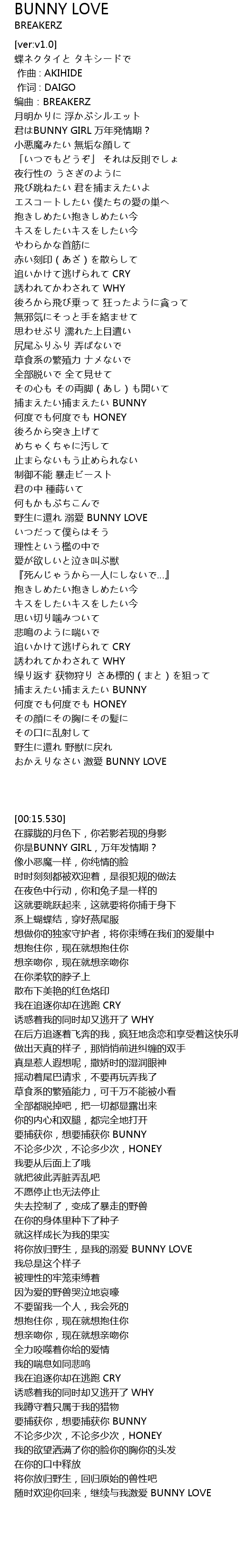 | [03:36.710] | おかえりなさい 激愛 BUNNY LOVE |