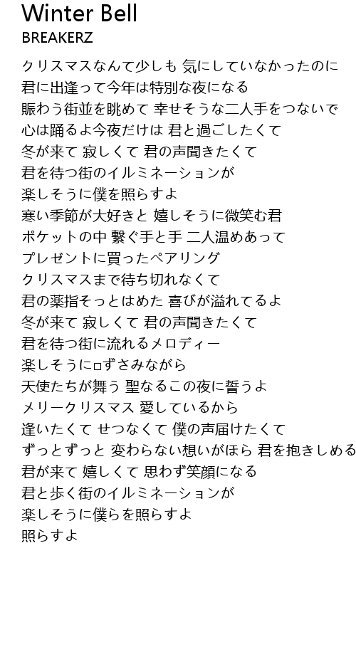 | 冬が来て 寂しくて 君の声聞きたくて | |