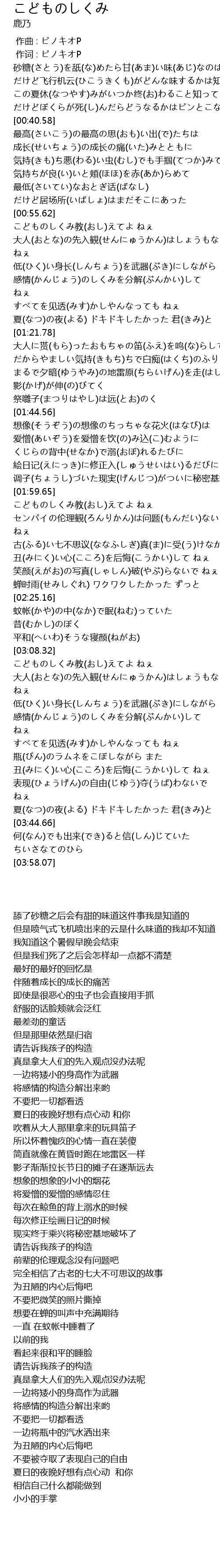 | [00:01.00] | 作词 : ピノキオP |
