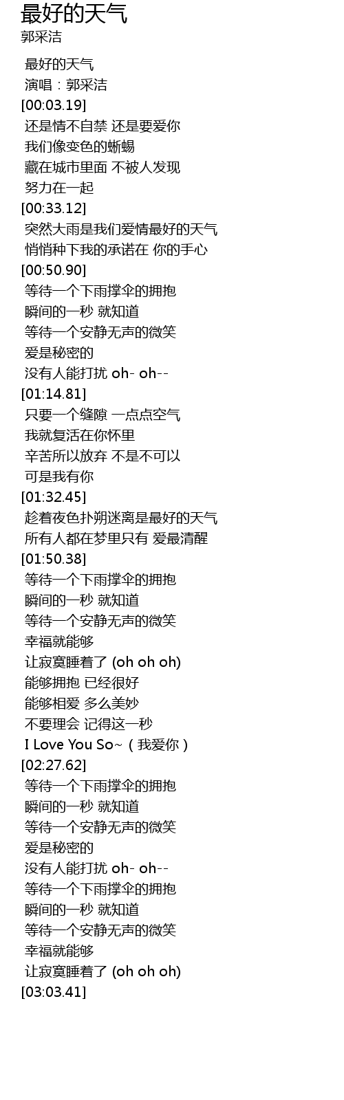 | [00:01.55] | 最好的天气 |