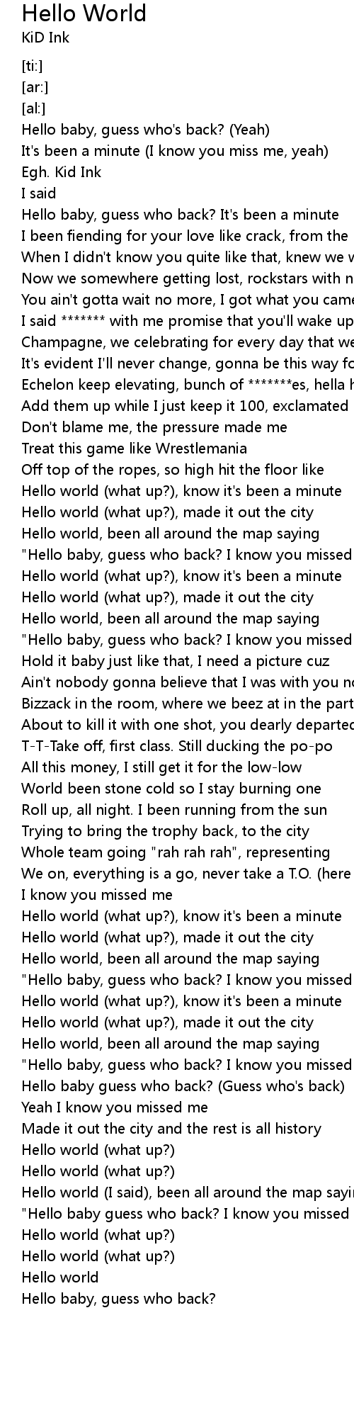 Hello world (what up?), know it's been a minute |