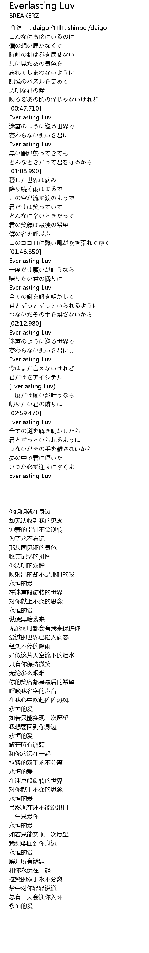 | [00:00.00] | 作词 : ∶daigo 作曲∶shinpei/daigo |