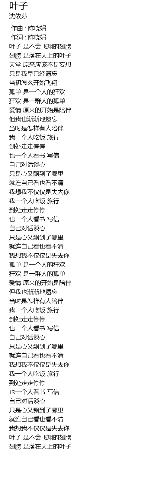 | [04:38.27] | 叶子 是不会飞翔的翅膀 |