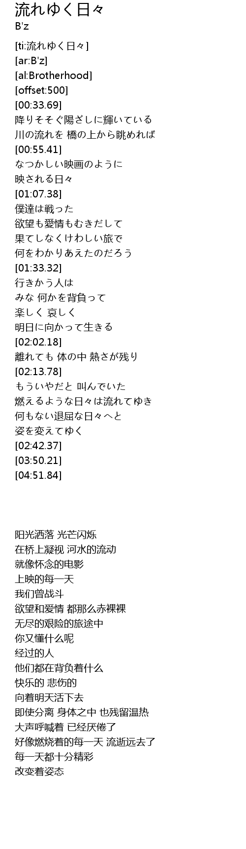 | [02:19.49] | 燃えるような日々は流れてゆき |