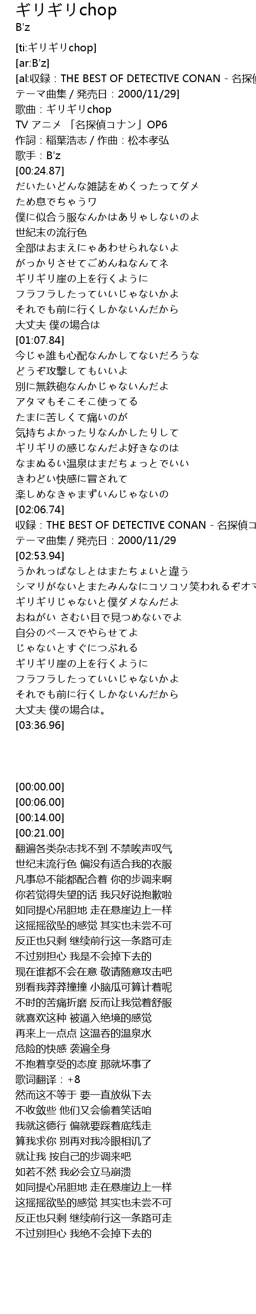 | [00:06.00] | TV アニメ 「名探偵コナン」OP6 |