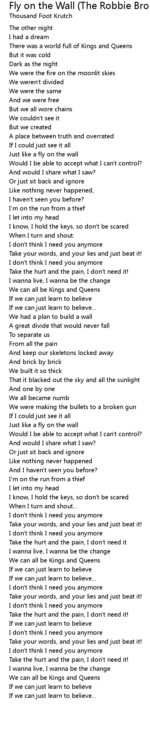 Fly on the Wall (The Robbie Bronnimann Mix) Lyrics