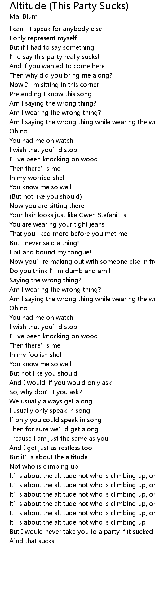 | Song | Altitude (This Party Sucks) |