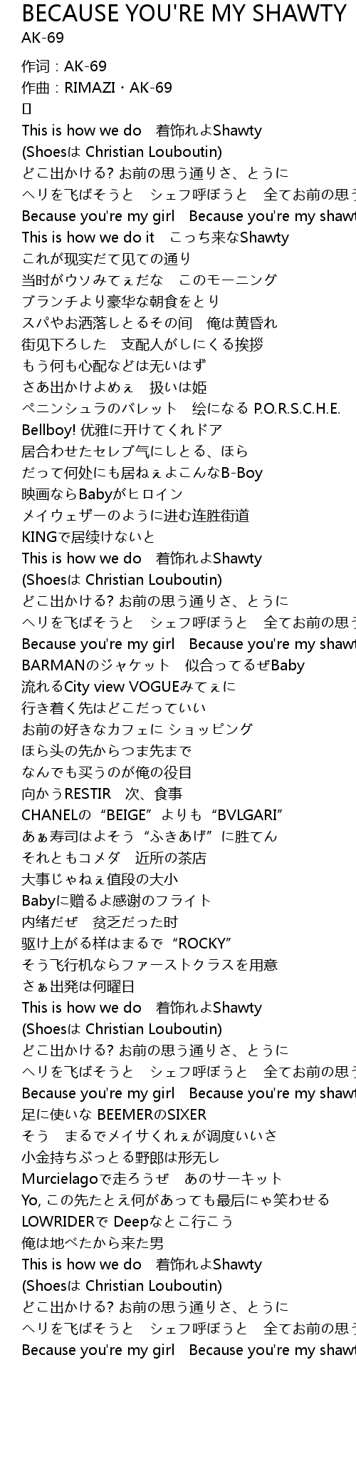 | Song | BECAUSE YOU'RE MY SHAWTY |