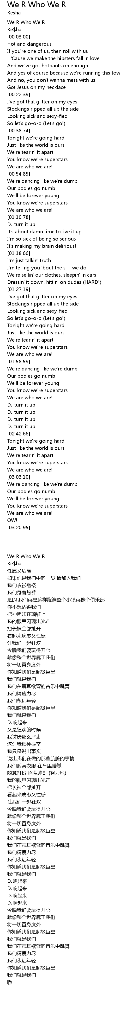 | [01:23.06] | We're sellin' our clothes, sleepin' in cars |