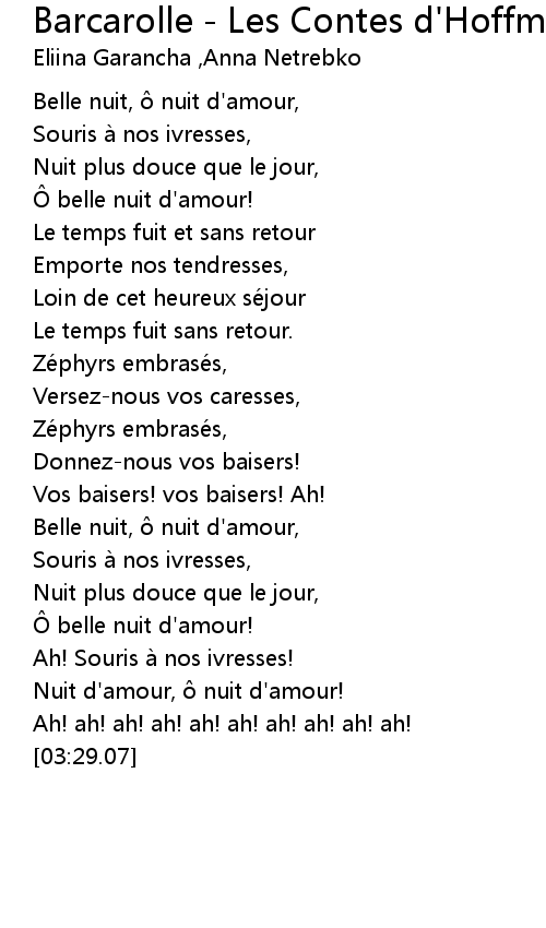 | [01:26.72] | Ô belle nuit d'amour! |