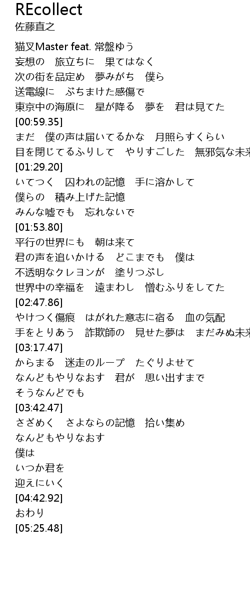 | [04:20.92] | さざめく さよならの記憶 拾い集め |