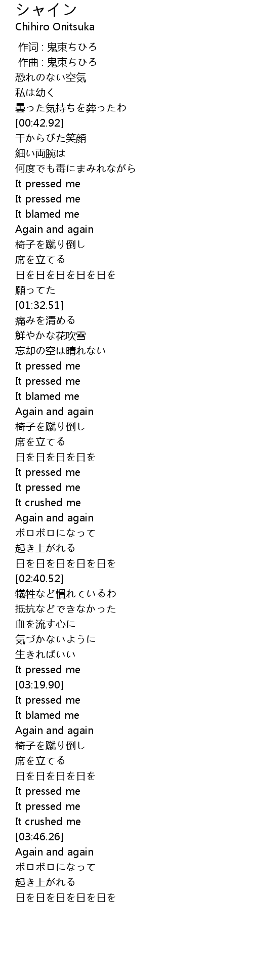 | [00:01.000] | 作曲 : 鬼束ちひろ |