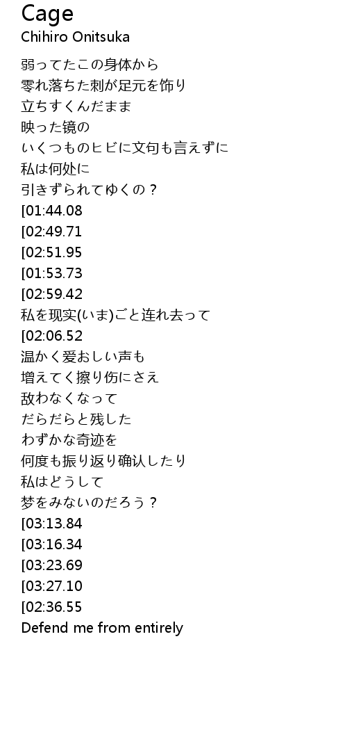 | [00:45.44][01:44.08][02:47.47][03:11.94] | 谁か言って |