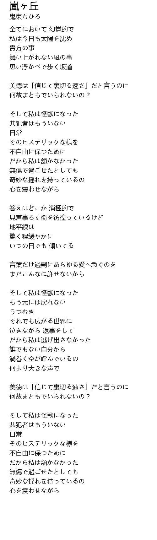 | Song | 嵐ヶ丘 |