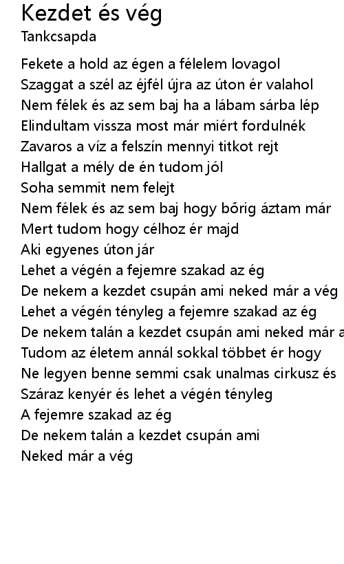 | De nekem tala n a kezdet csupa n ami neked ma r a ve g | |