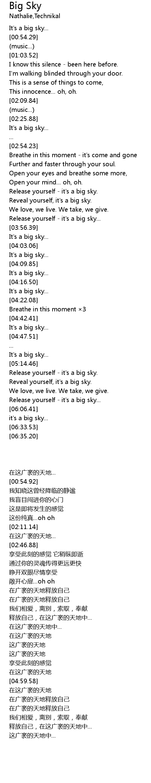 | [05:58.00] | Release yourself it' s a big sky... |