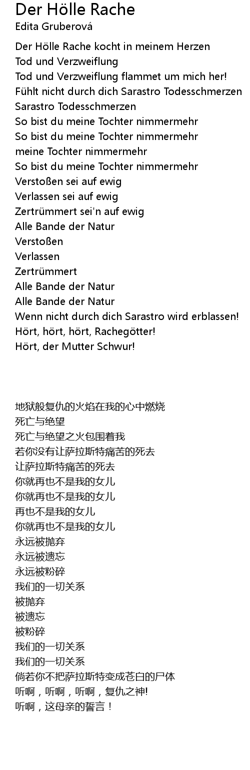 | [00:02.13] | Der H lle Rache kocht in meinem Herzen |