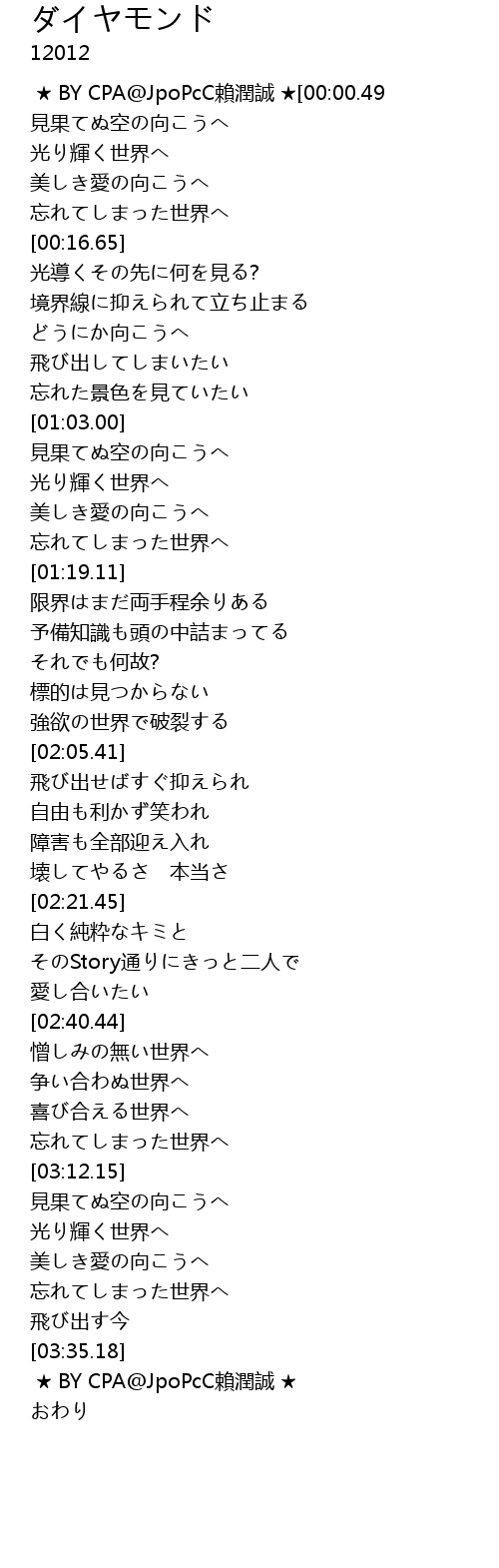 | Song | ダイヤモンド |
