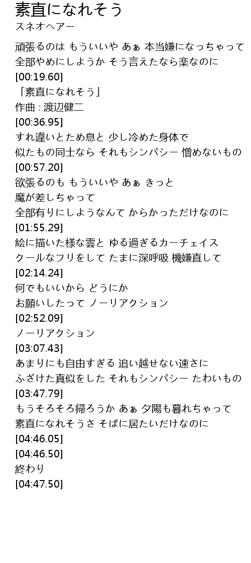 | [03:38.65] | ふざけた真似をした それもシンパシー たわいもの |