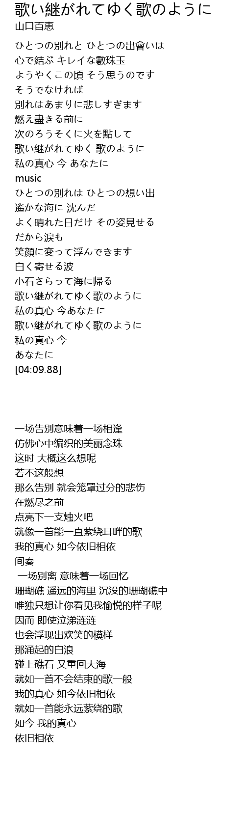 | [03:14.25] | 歌い継がれてゆく歌のように |