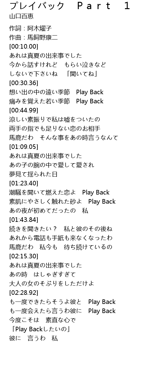 [01:25.24] 潮騒を聞いて燃えた恋よ Play Back
