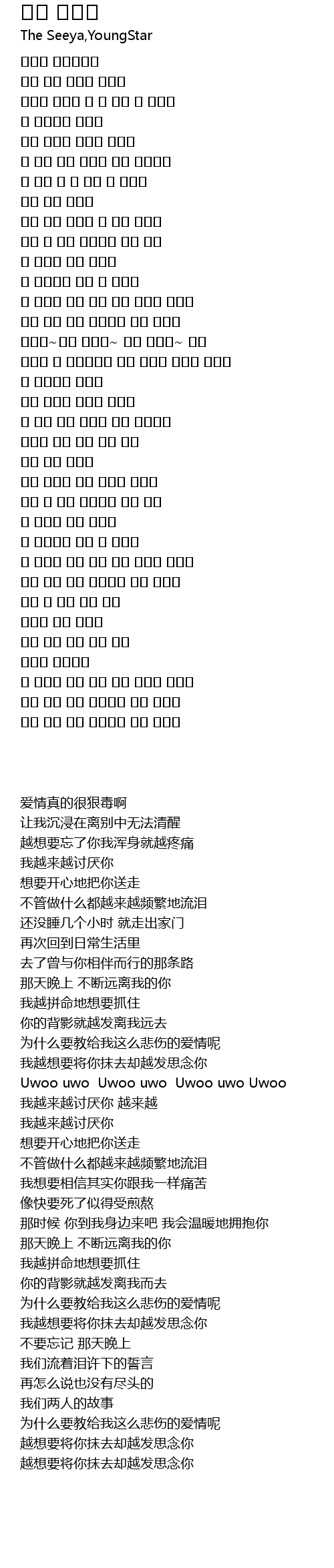 | [02:39.810] | 왜 이렇게 내게 슬픈 사랑 가르쳐 준거야 |