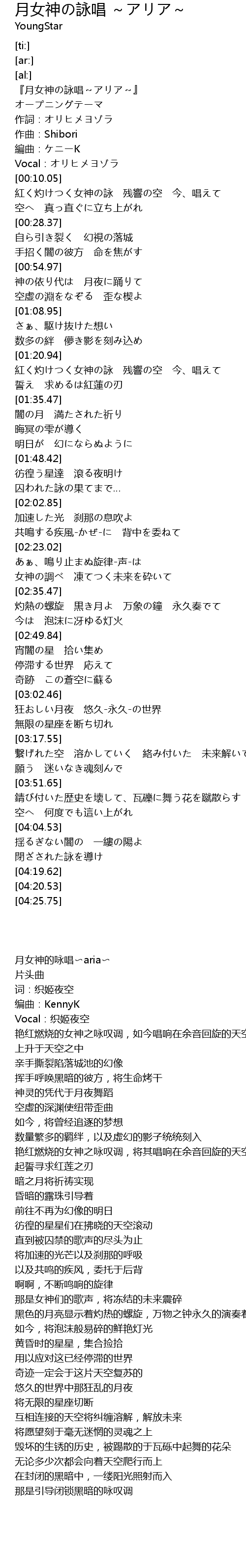 | [00:01.05] | 『月女神の詠唱~アリア~』 |