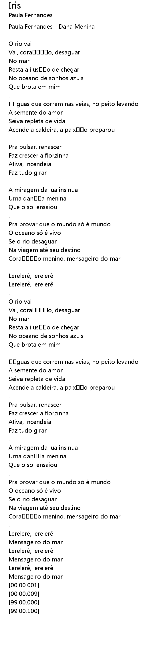| [00:00.39] | Paula Fernandes - Dana Menina |