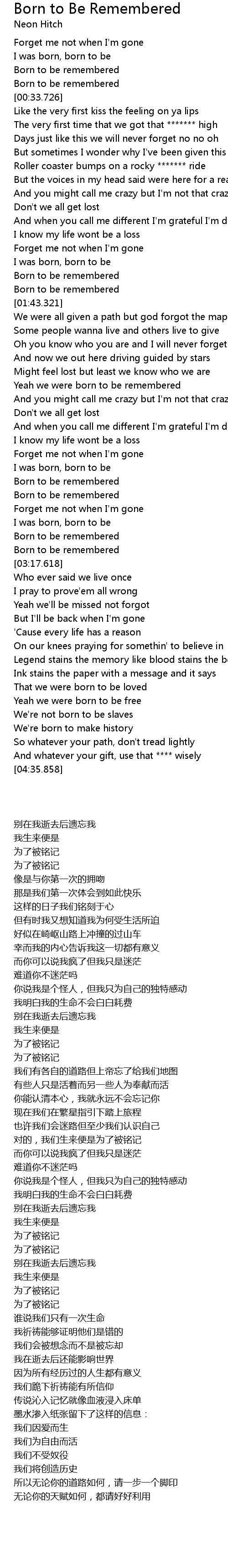 [02:43.305] Born to be remembered