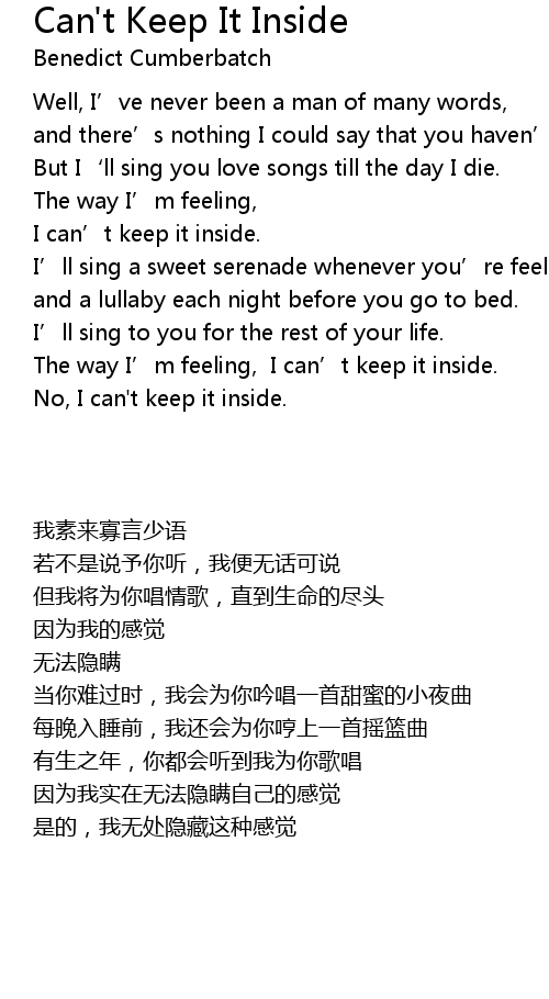| [01:07.330] | The way I' m feeling, I can' t keep it inside. |