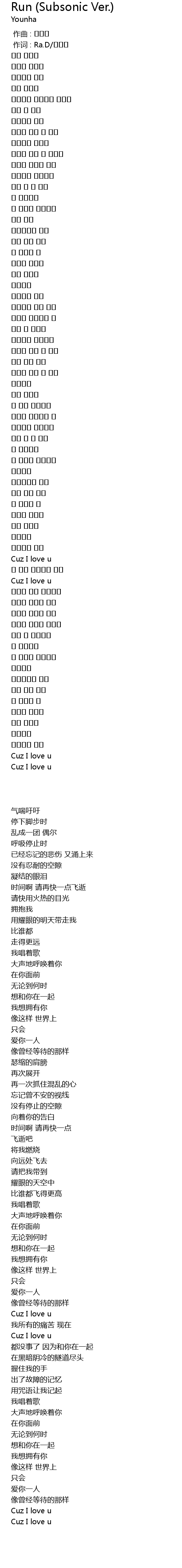 Run (Subsonic Ver.) Lyrics