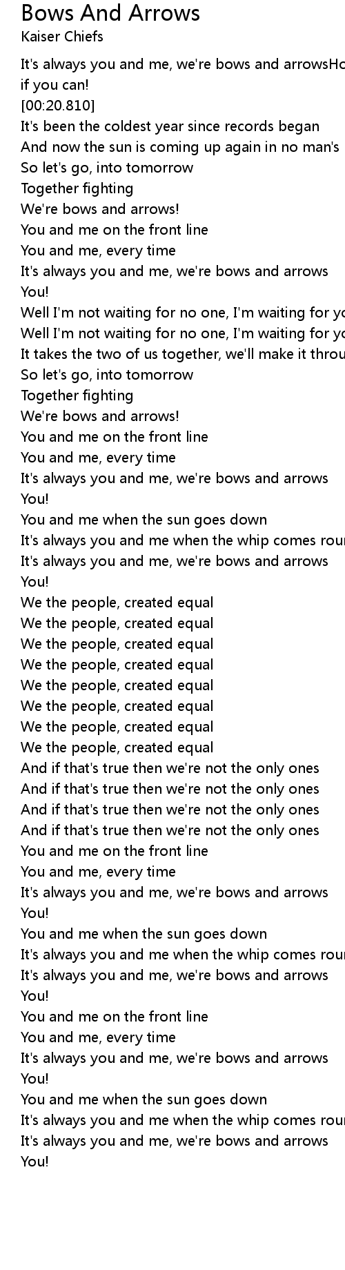 It's always you and me, we're bows and arrowsHold onto your hearts, if you can! |