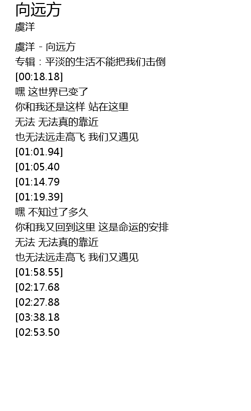 | [00:02.18] | 虞洋 - 向远方 |