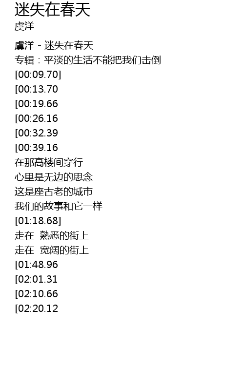 | [00:01.70] | 虞洋 - 迷失在春天 |