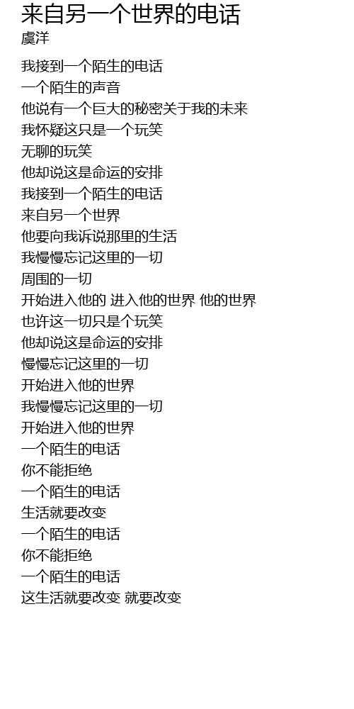 | 我接到一个陌生的电话 | |