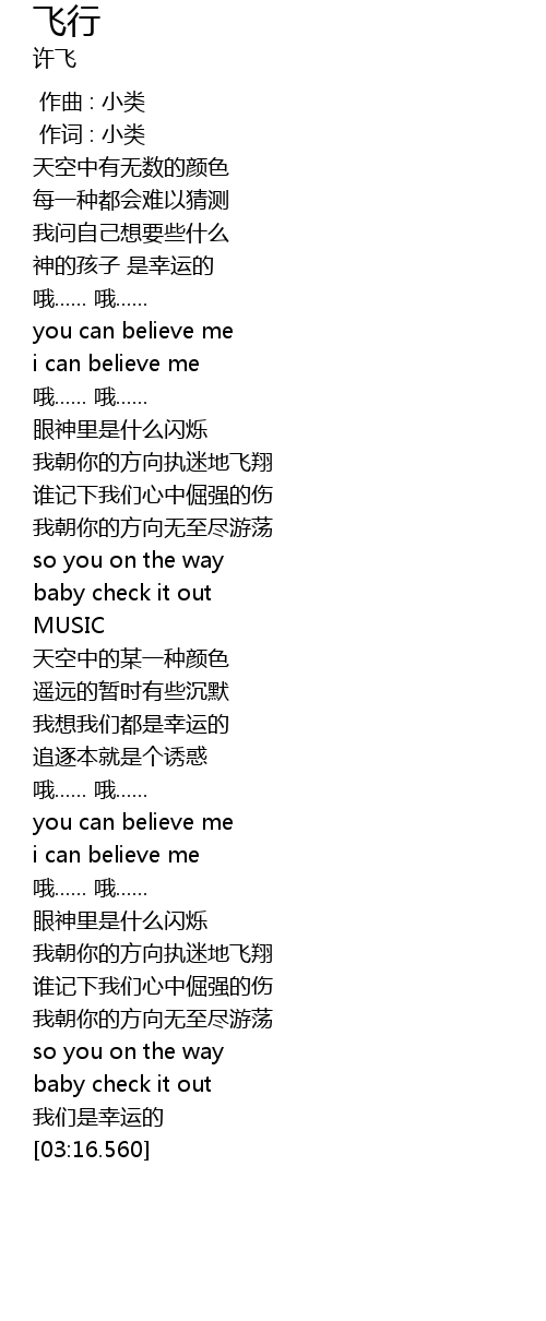 | [00:55.760] | wo chao ni de fang xiang zhi mi di fei xiang |
