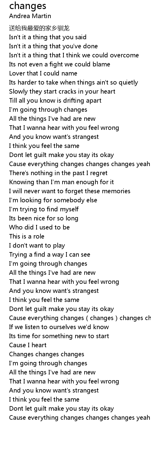 | [01:07.383] | Cause everything changes changes changes yeah |