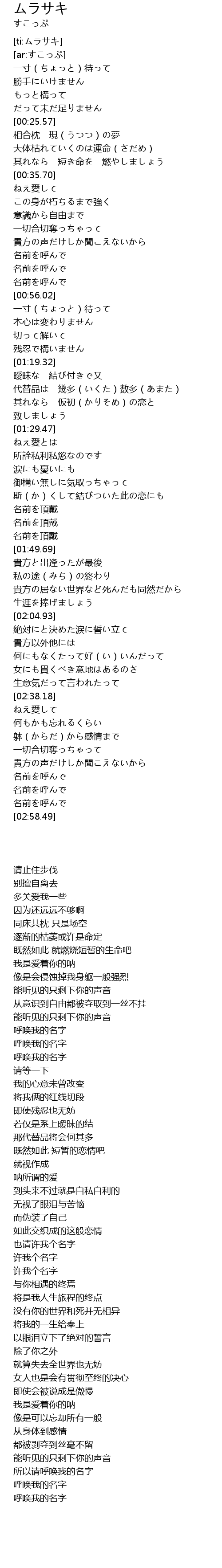 | [00:25.91] | 相合枕 現(うつつ)の夢 |