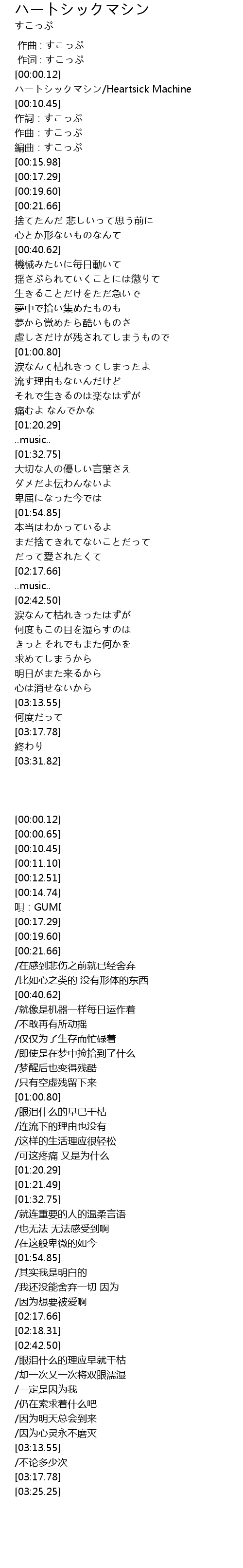 | [00:00.65] | ハートシックマシン/Heartsick Machine |